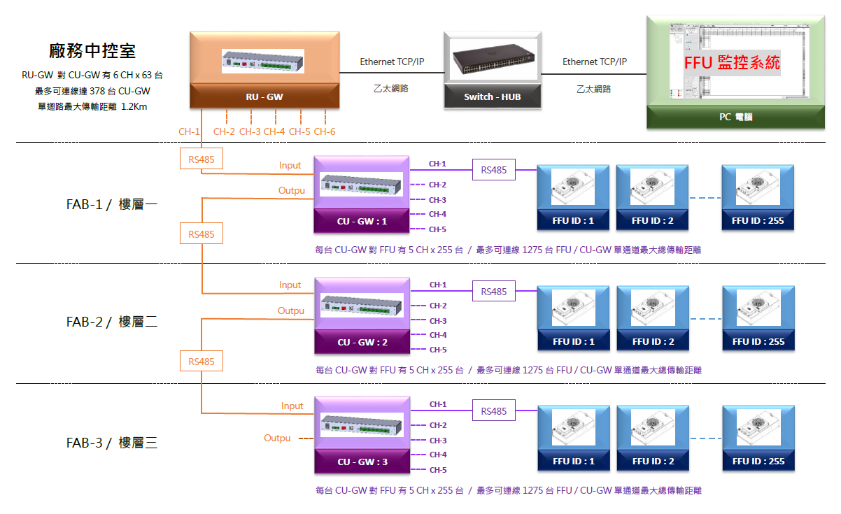- 搭配FFU Monitoring System圖控軟體